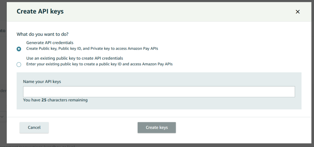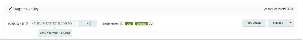 You will now see the Credentials that you need to copy and paste over from your Amazon Pay account you created.