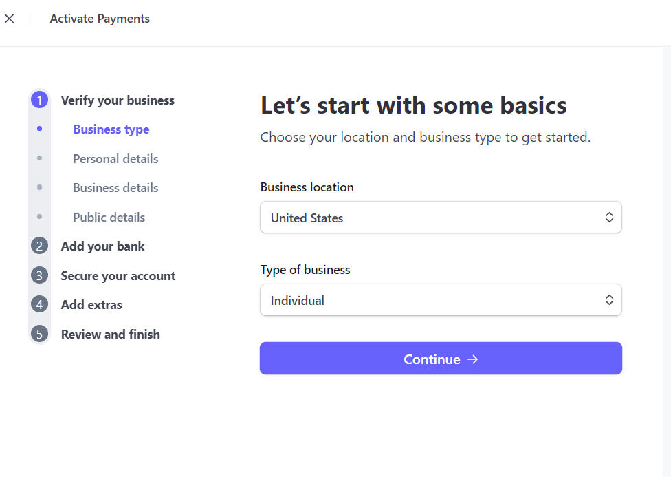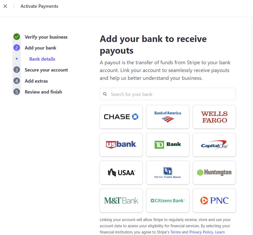 - Enter Business Details: Provide all necessary business information as prompted by Stripe.