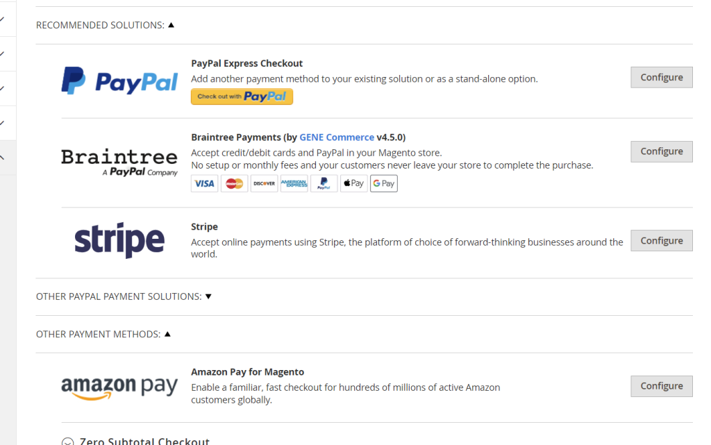 Stores>Configuration>Sales>Payment Methods. - Locate Stripe Payment Option: Find the Stripe payment option within the list and click on